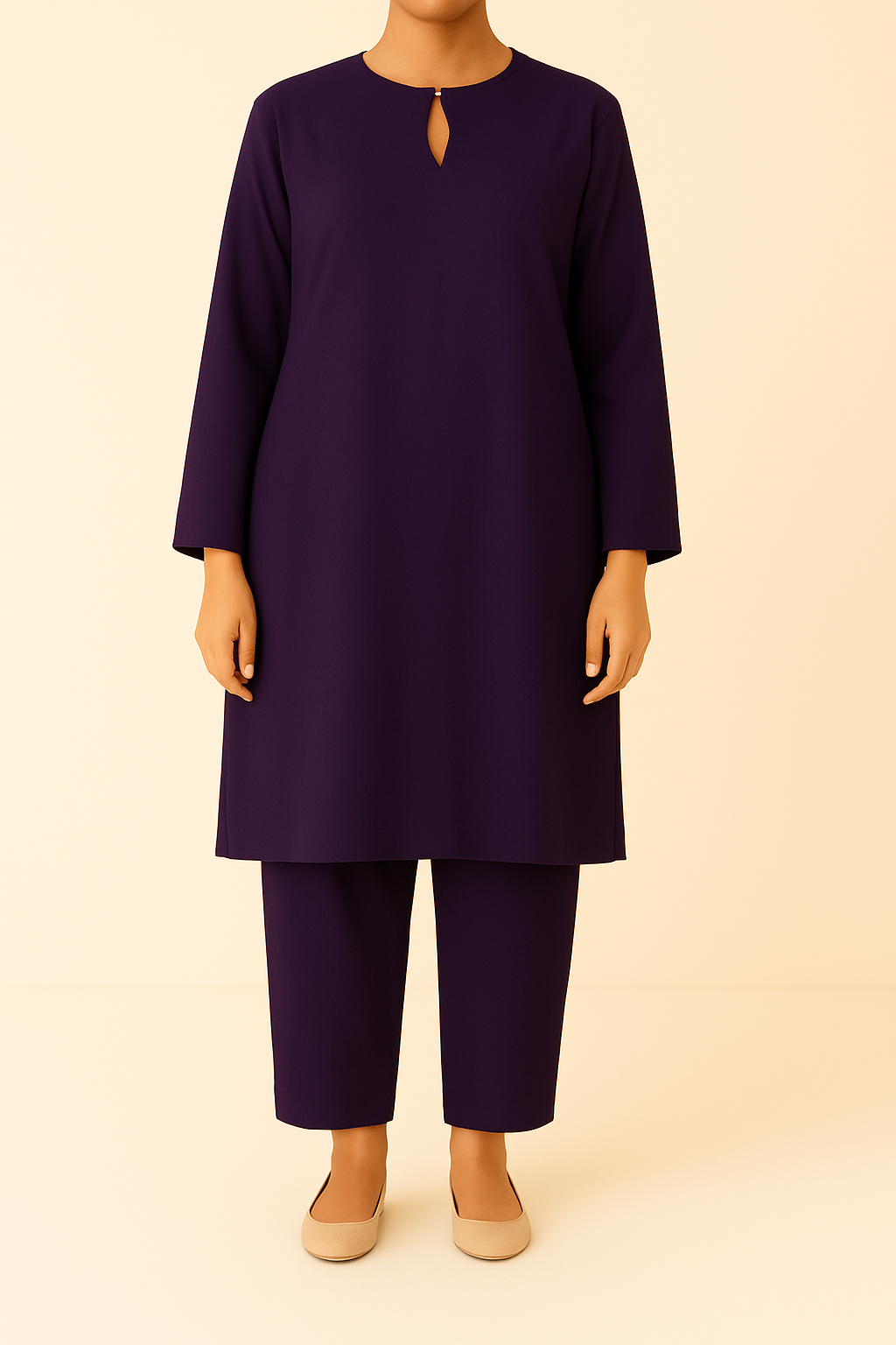 Add a touch of grace to your wardrobe with this 2-piece kurta and trouser set, defined by its pearl-tied keyhole neckline and minimalist silhouette. Stitched in premium cotton, this outfit is lightweight, breathable, and ideal for warm weather. A timeless pick for modest fashion lovers who appreciate subtle charm and versatile styling.