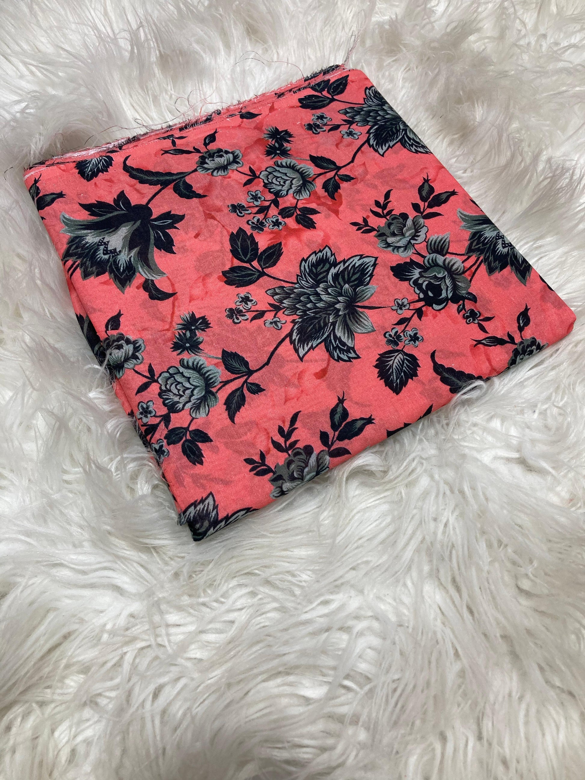 2PC Unstitched Blush Noir – Coral Pink Floral Lawn