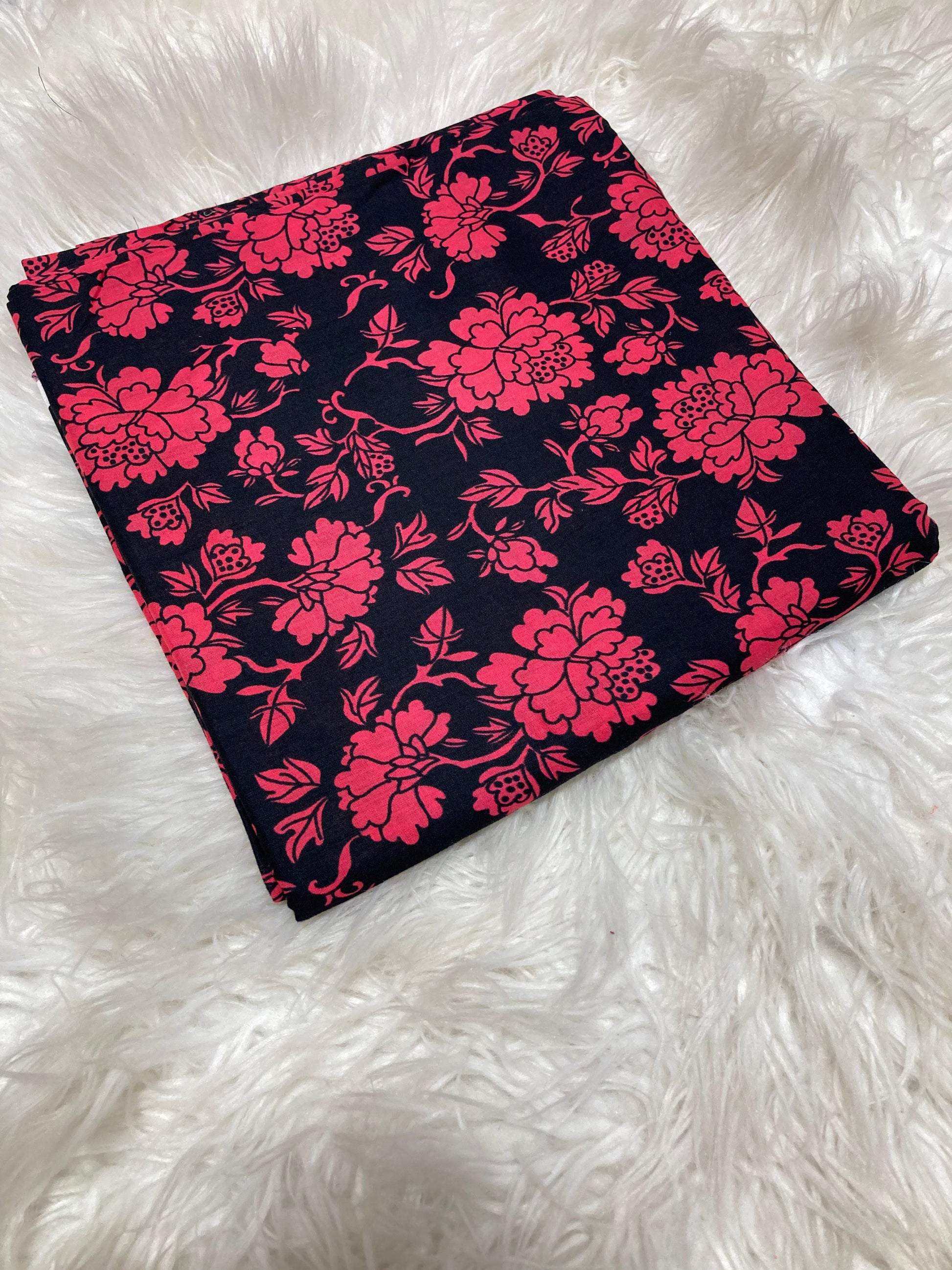 Bold and graceful, this 2-piece unstitched lawn suit comes in black with standout hot pink floral print. Perfect for daily wear with a punch of color, stitched or unstitched.