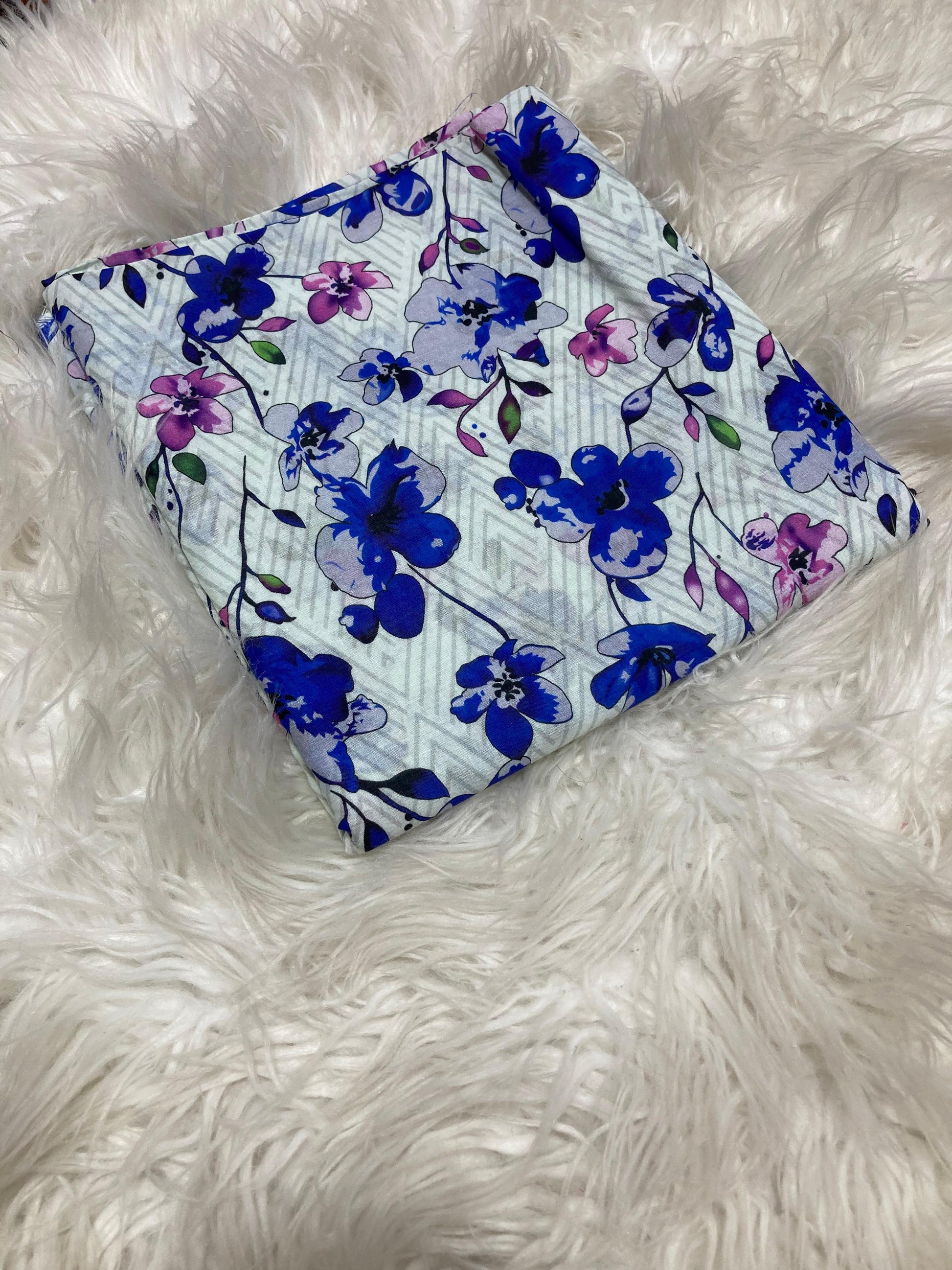 2PC Unstitched Violet Breeze – Blue Floral Summer Lawn