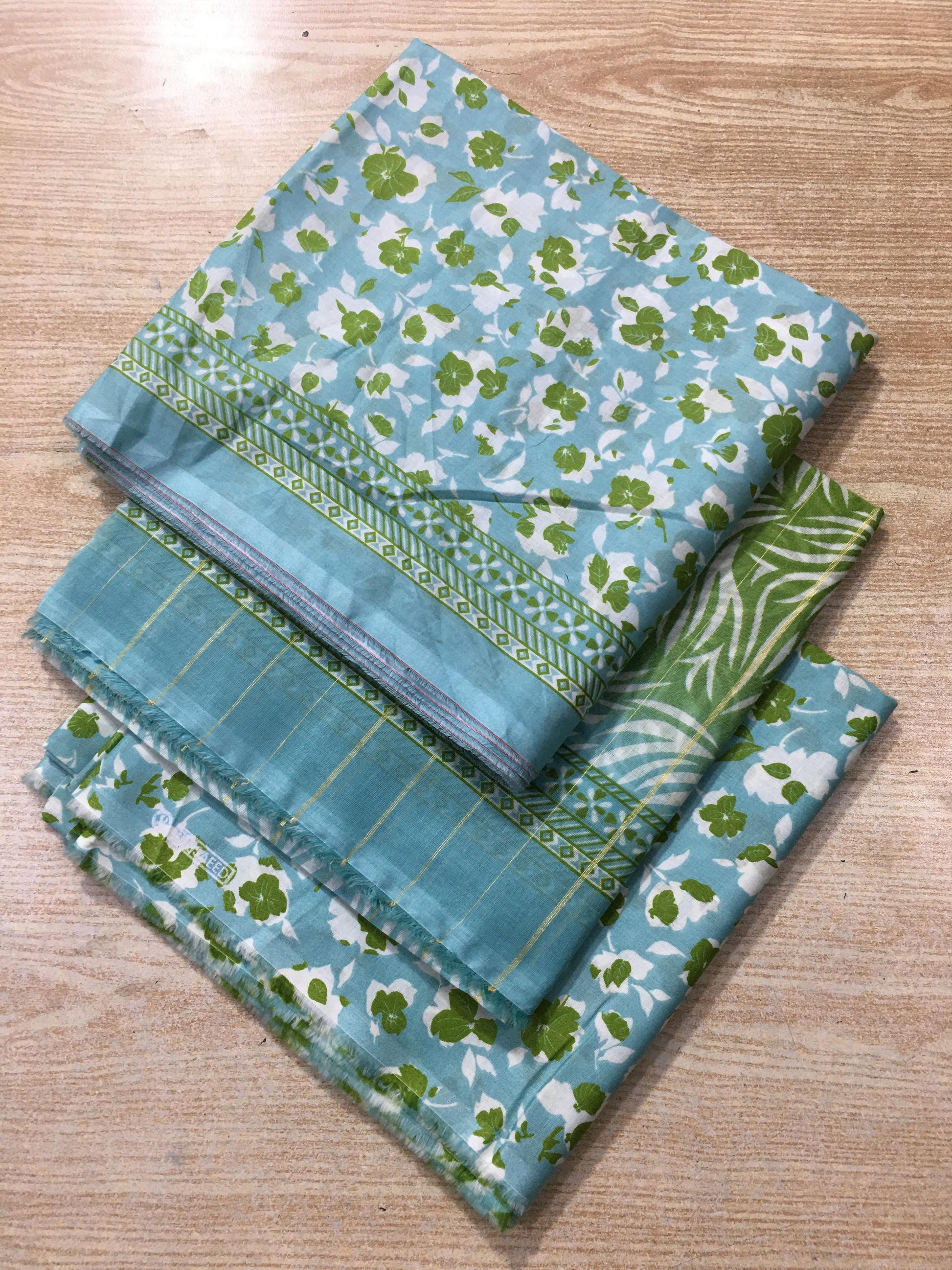 3PC Unstitched Aqua Meadow – Soft Summer Floral Lawn