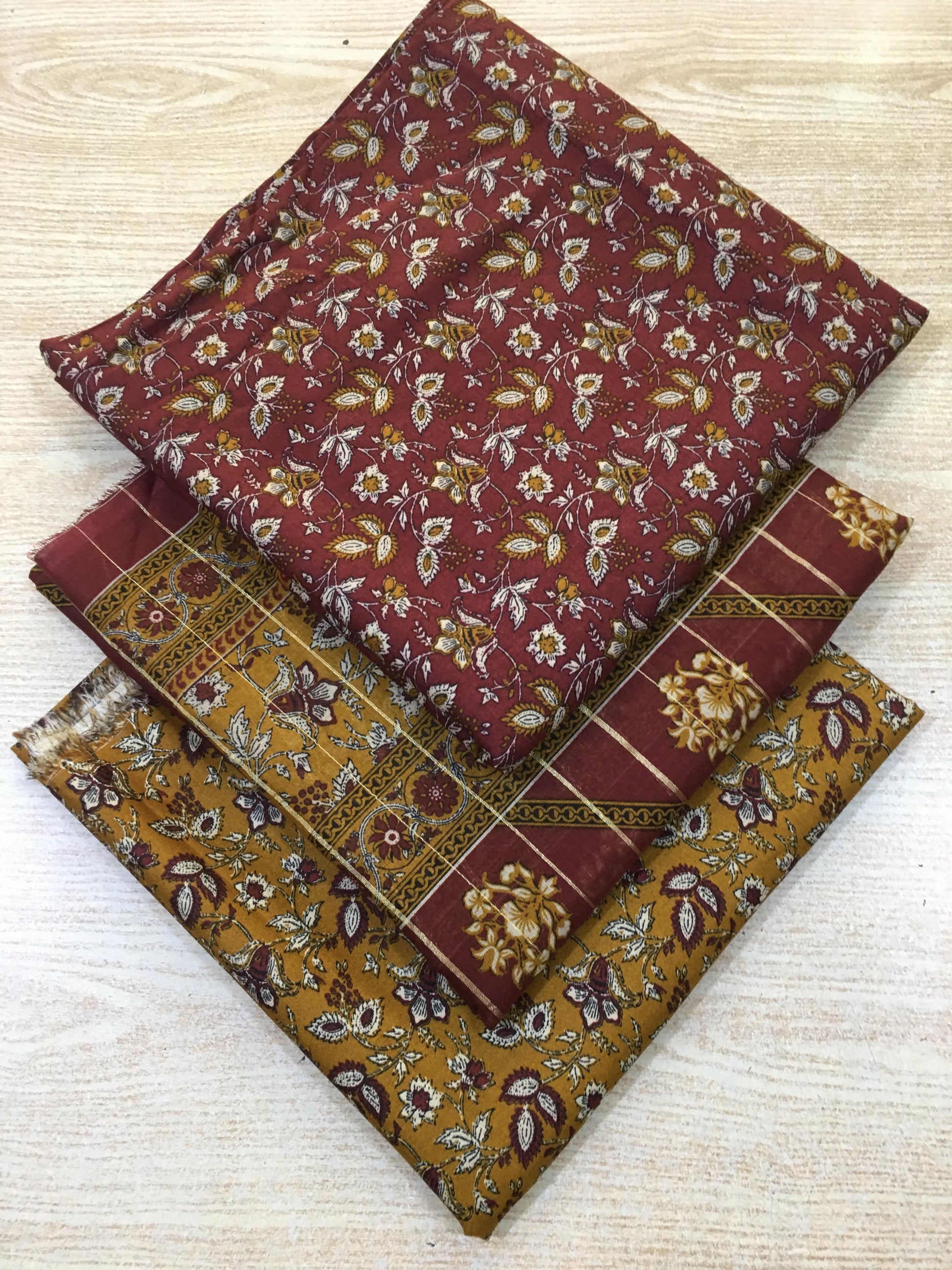 3PC Unstitched Rust Heritage – Traditional Maroon & Mustard Lawn