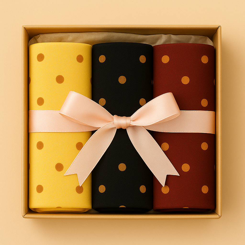 Brighten your wardrobe with our Desert Dusk Box Set — a curated pack of 3 polka dot printed chiffon georgette hijabs in elegant light yellow, brown and black tones. Perfect for gifting, personal use, or building a color-coordinated modest fashion collection.