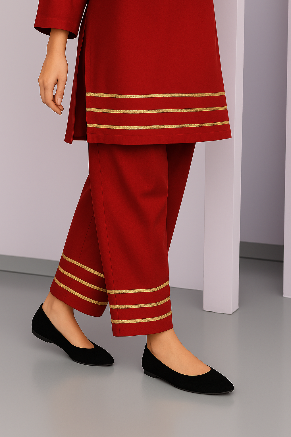 Introducing our Embellished Trousers with Gota on Painchas, a blend of modern detailing and everyday comfort. Designed to bring subtle elegance to your wardrobe, these trousers feature delicate Gota stitched at the hem.