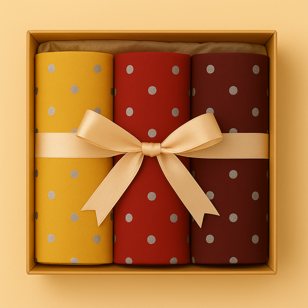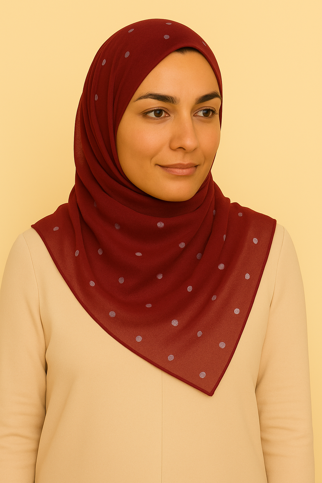 Brighten your wardrobe with our Harvest Ruby Box Set — a curated pack of 3 polka dot printed chiffon georgette hijabs in elegant yellow, red and maroon tones. Perfect for gifting, personal use, or building a color-coordinated modest fashion collection.