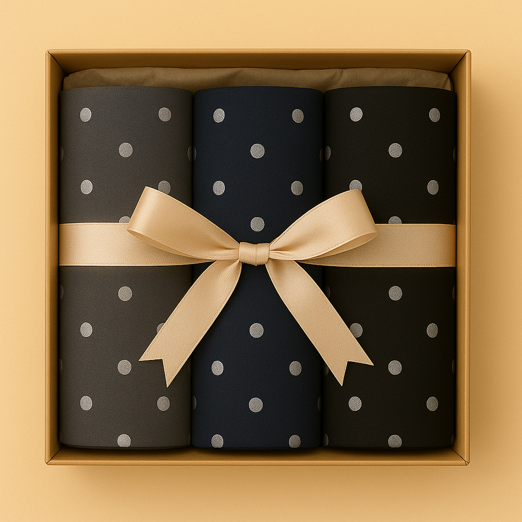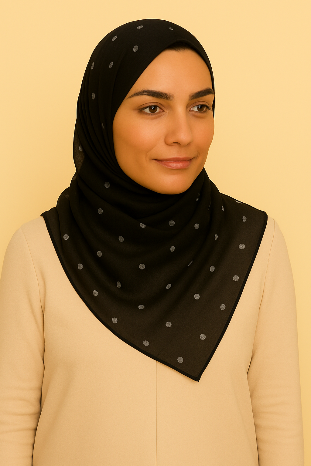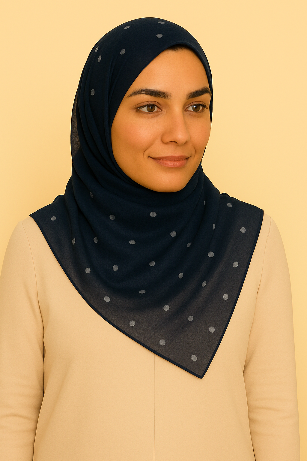 Brighten your wardrobe with our Nightfall Steel Box Set — a curated pack of 3 polka dot printed chiffon georgette hijabs in elegant gray, navy blue and black tones. Perfect for gifting, personal use, or building a color-coordinated modest fashion collection.
