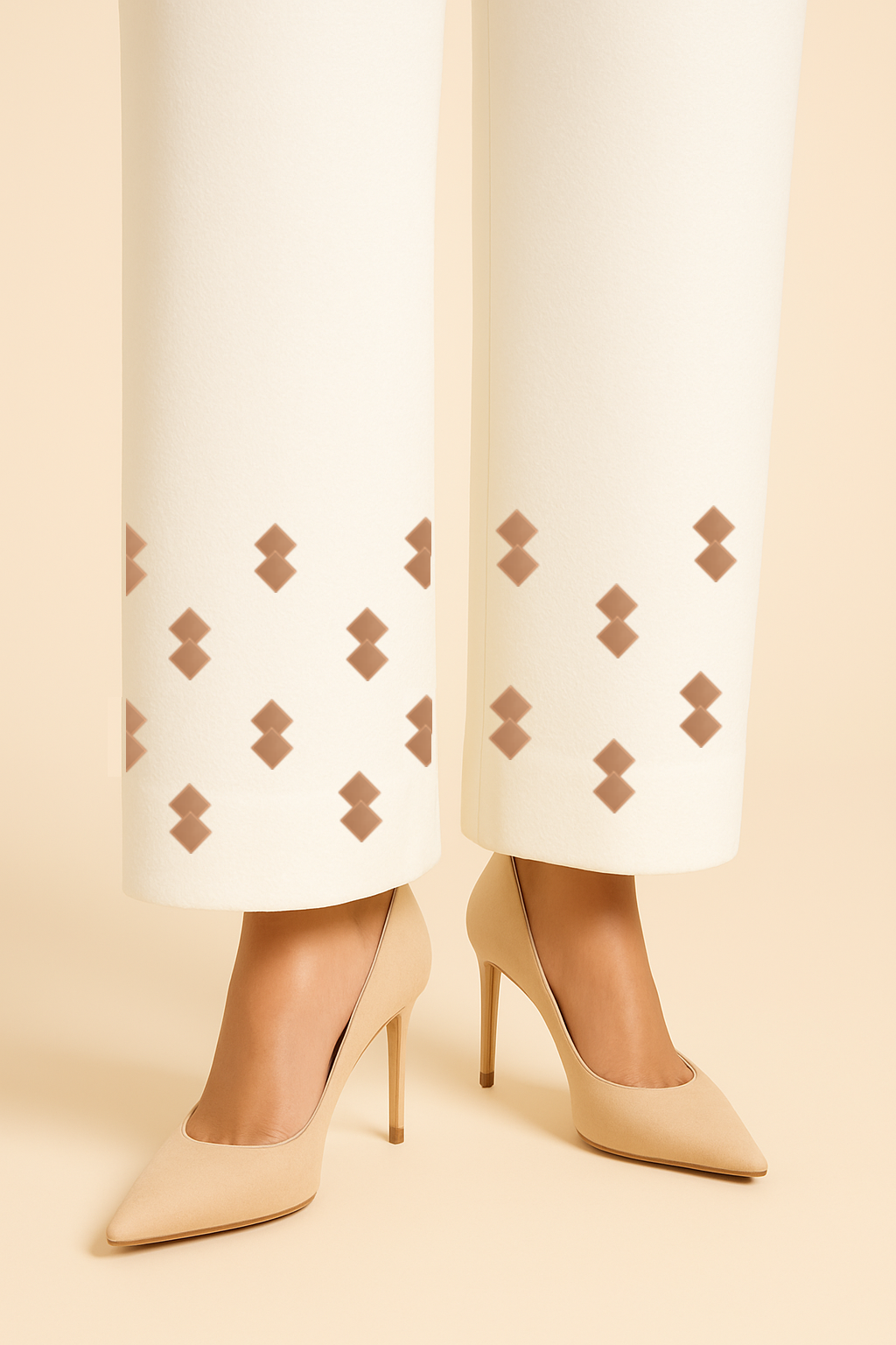 White: Fresh, airy base with elegant printed motifs. Elevate your everyday style with our Women's Printed Palazzo Trousers in White, crafted for a breezy silhouette, day-long comfort, and refined versatility. Made from premium cotton, they’re durable and ready to wear right out of the package.