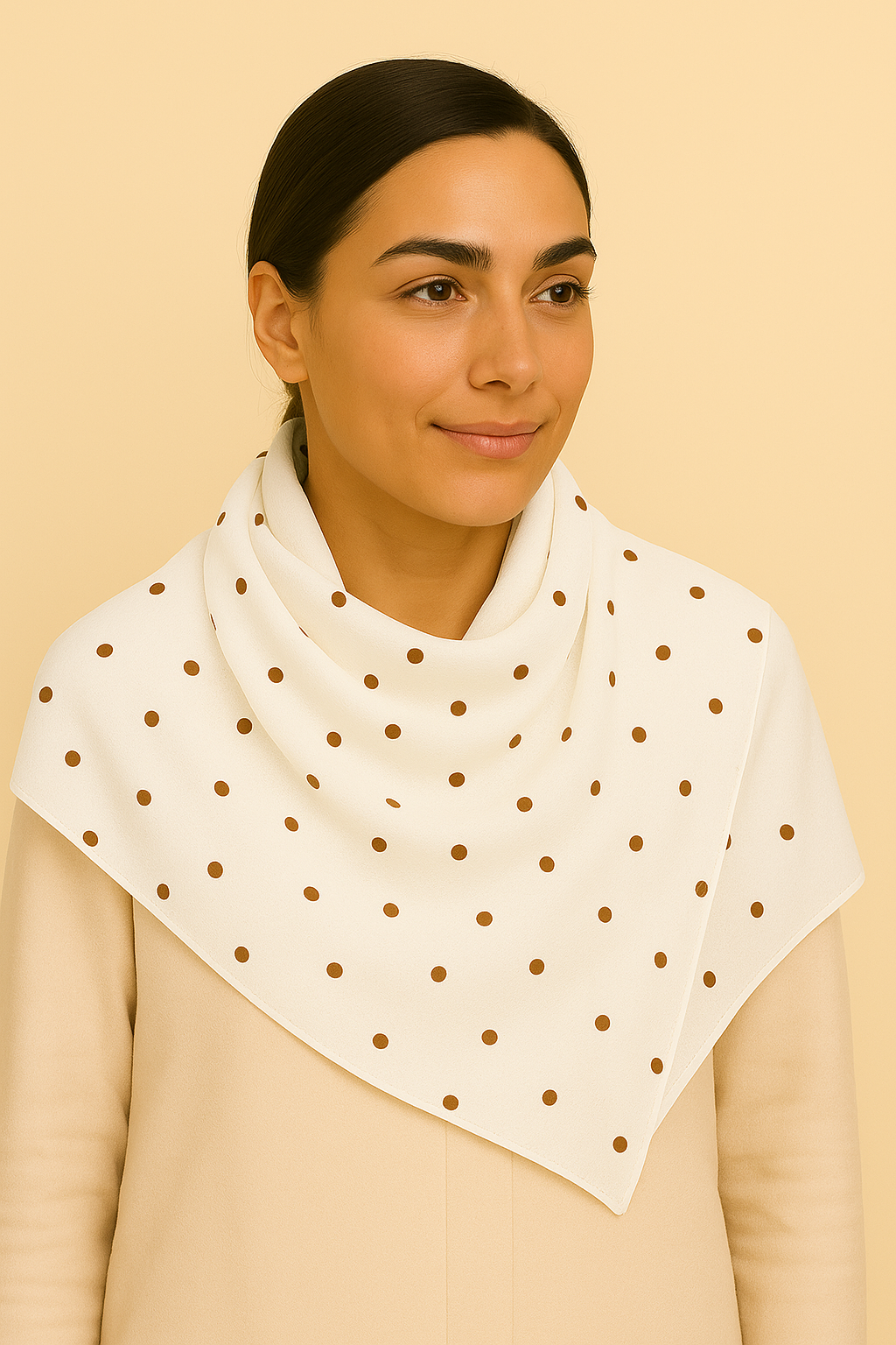 Copper color polka dots printing on white, light blue and navy blue hijabs