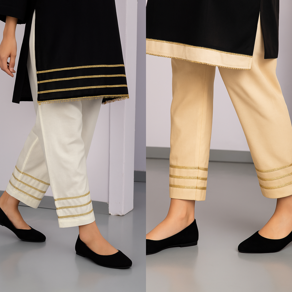 Special Offer - Limited time. Bundle pack of 2 Trousers with Gotta work on Painchas - Base Color White and Beige